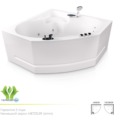 гидромассаж (сенсорное управление, 6 форсунок), аэромассаж (10 форсунок), спинной массаж (12 форсунок), кран Турбо, рама, слив-перелив.