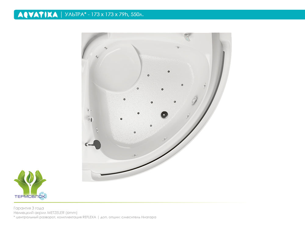 Акриловая ванна AQVATIKA Ультра 173x173x79