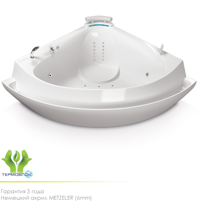 гидромассаж (сенсорное управление, 6 форсунок), аэромассаж (12 форсунок), спинной массаж (12 форсунок), кран Турбо, смеситель, рама, фронтальная панель, подголовник, слив-перелив