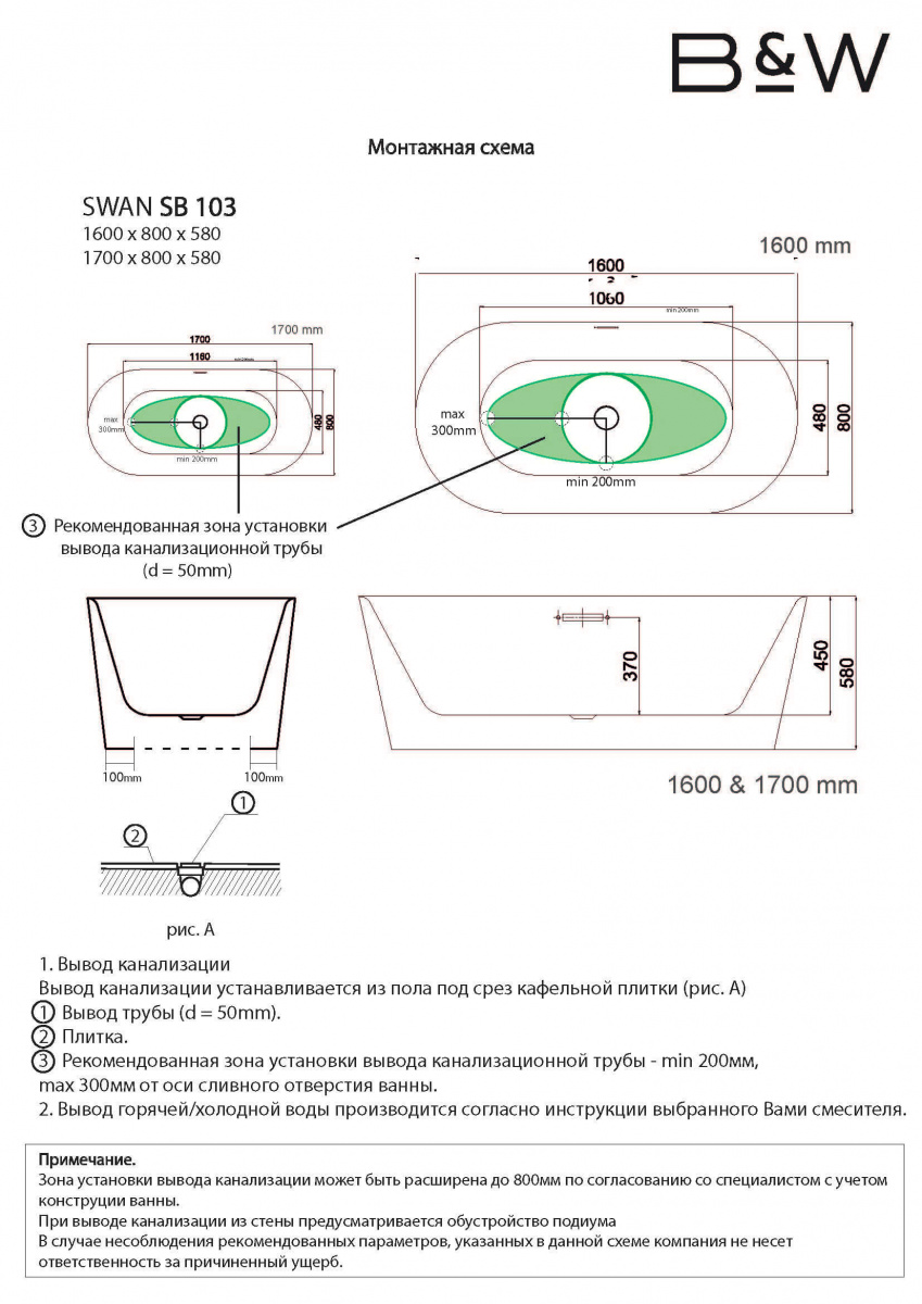 Акриловая ванна Black&White SB 103