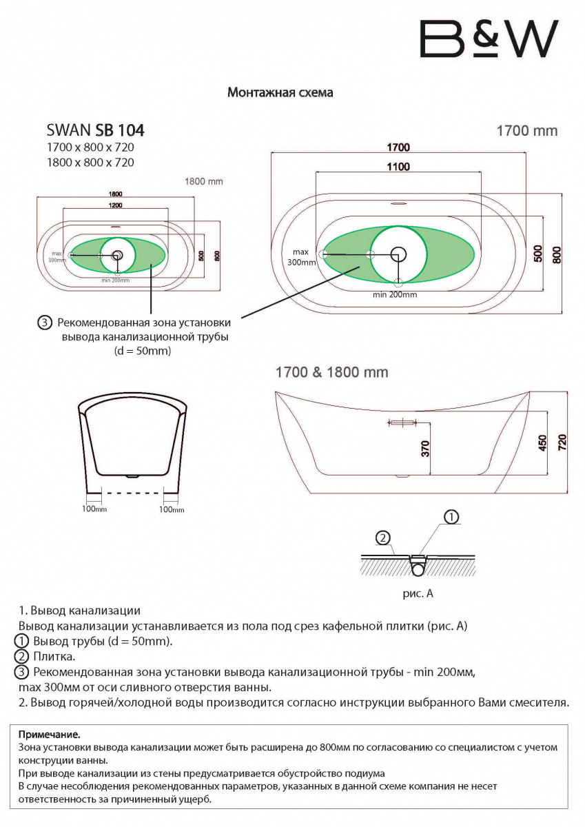 • 100% чистый, первичный, акрил Lucite® • Цвет белый глянцевый • Отдельно стоящая модель • Сварной каркас из нержавеющей стали • Регулируемые, по высоте, ножки каркаса • Слив-перелив и сифон • Хромированный донный клапан push-open • Объем 266 л • Вес 53 кг