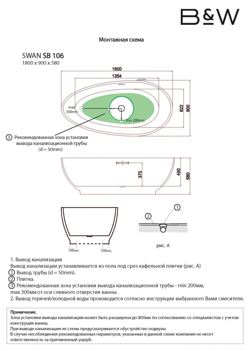 Акриловая ванна Black&White SB 106