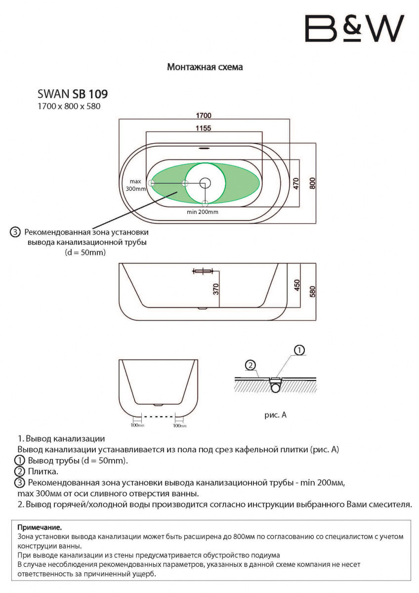 • 100% чистый, первичный, акрил Lucite® • Цвет белый глянцевый • Отдельно стоящая модель • Сварной каркас из нержавеющей стали • Регулируемые, по высоте, ножки каркаса • Слив-перелив и сифон • Хромированный донный клапан push-open • Объем 256 л • Вес 52 кг