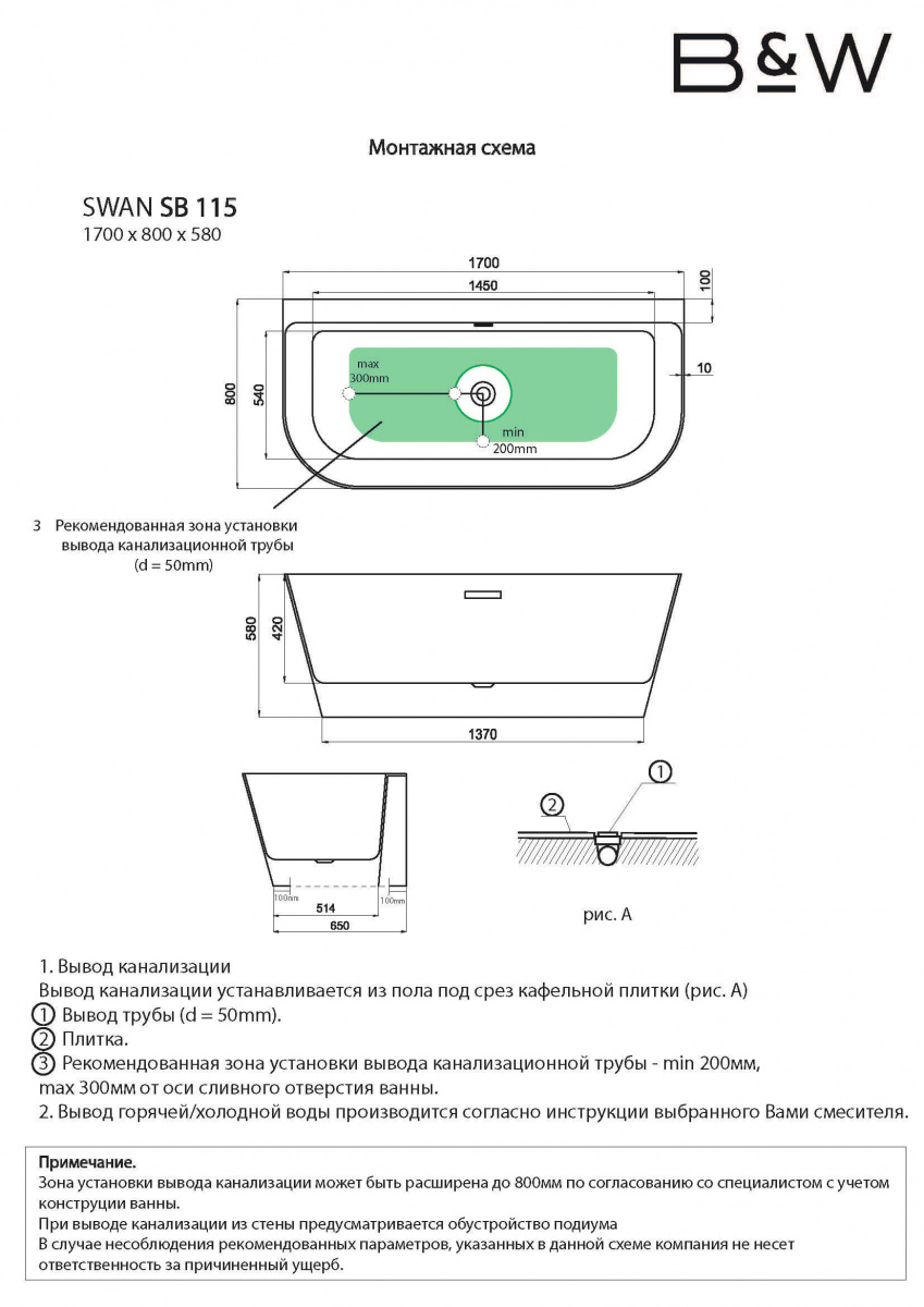 • 100% чистый, первичный, акрил Lucite® • Цвет белый глянцевый • Отдельно стоящая модель • Сварной каркас из нержавеющей стали • Регулируемые, по высоте, ножки каркаса • Слив-перелив и сифон • Хромированный донный клапан push-open • Объем 334 л • Вес 53 кг