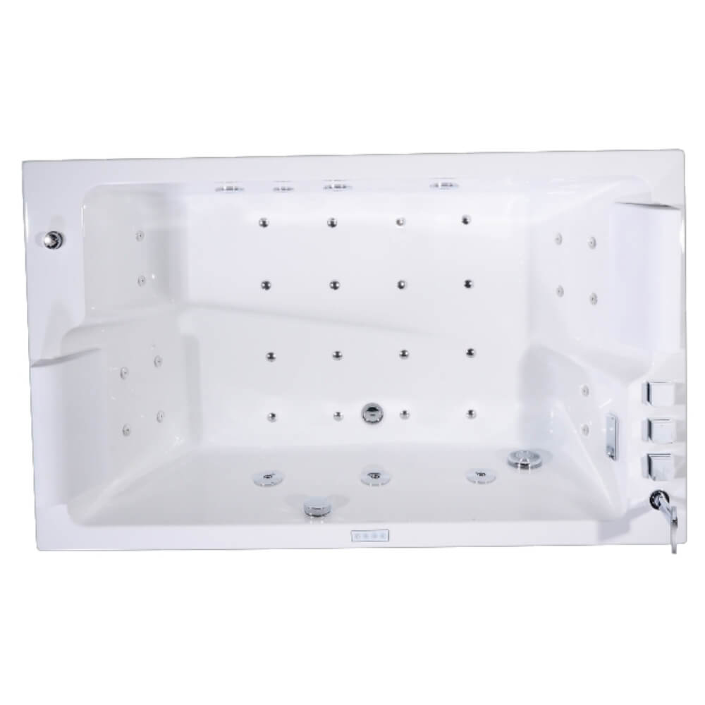 Описание Акриловая ванна с гидромассажем и аэромассажем, подсветкой.• Чистый акрил, цвет белый• Сварной каркас из нержавеющей стали• Гидромассаж: 8 спинных форсунок, 6 боковых форсунок, 4 форсунки в зоне ног• Аэромассаж:16 донных форсунок• Встроенный смеситель с р