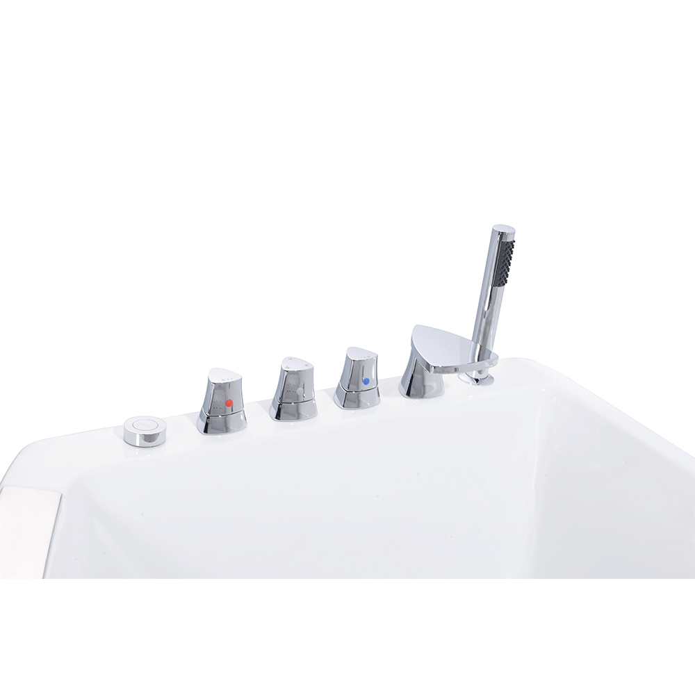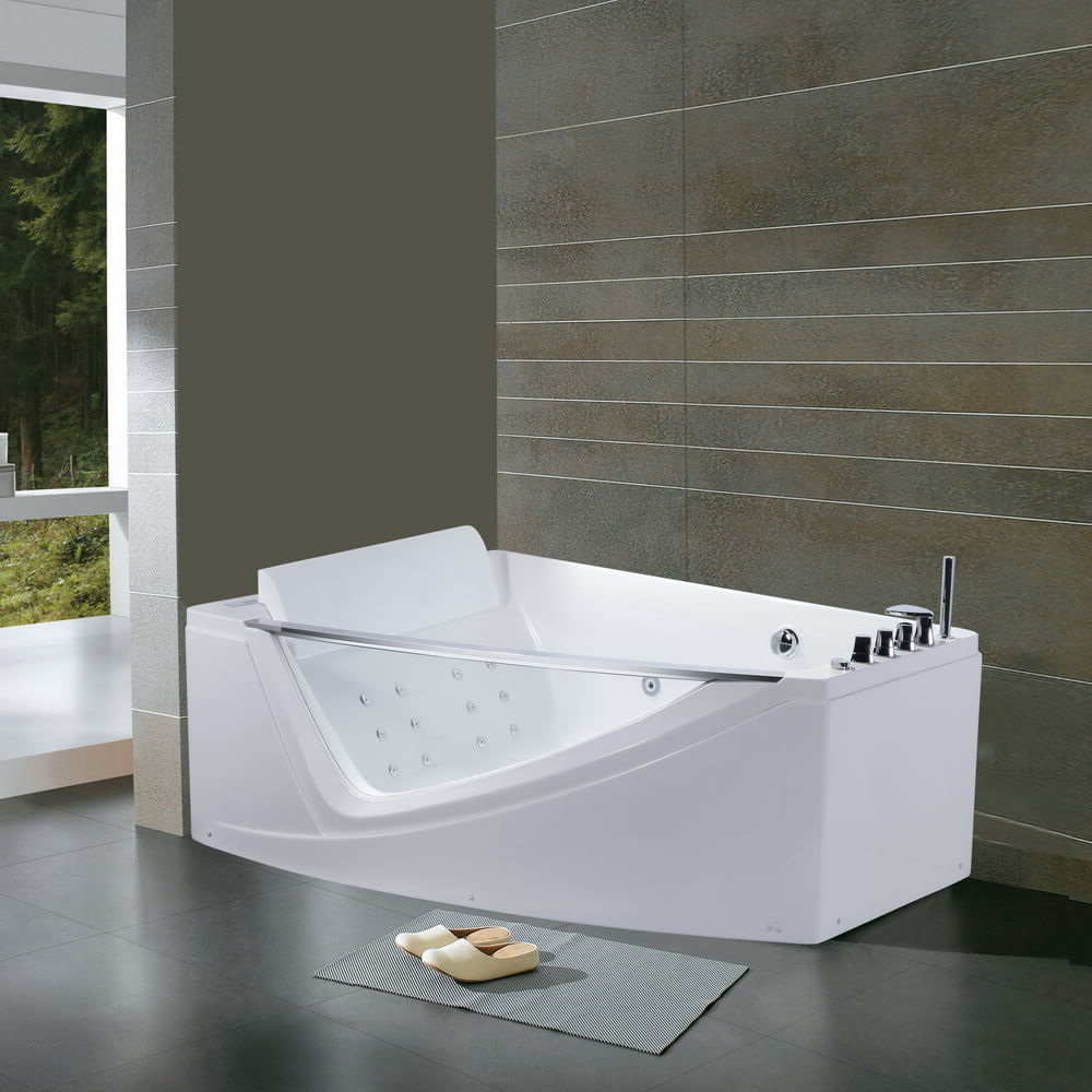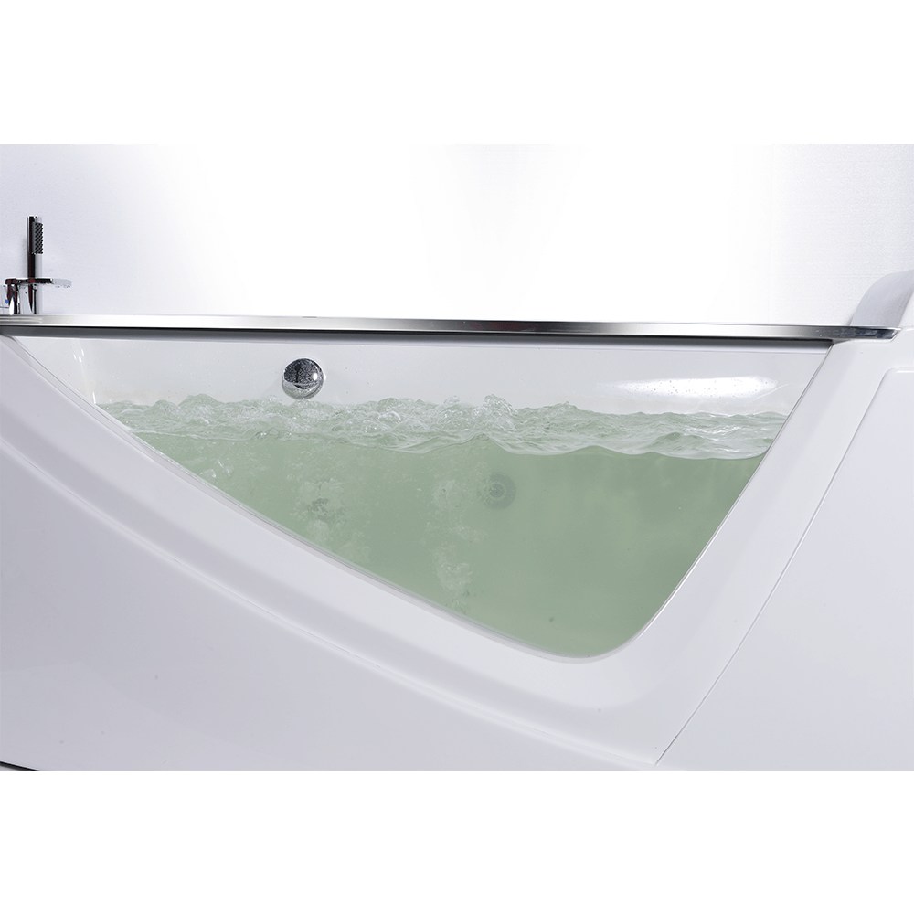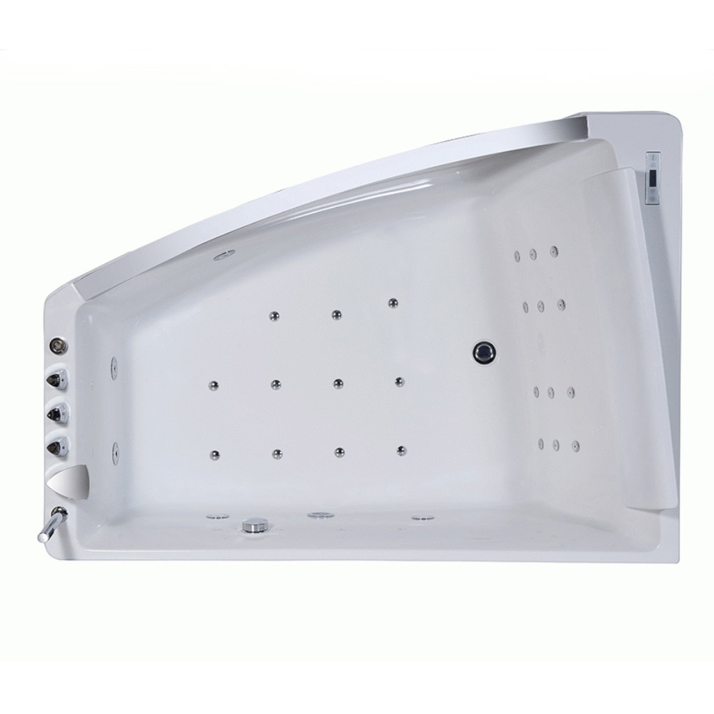 Описание Акриловая ванна с гидромассажем, аэромассажем, подсветкой.• Чистый акрил, цвет белый• Сварной каркас из нержавеющей стали• Гидромассаж:12 спинных форсунок, 3 боковые форсунки, 2 форсунки в зоне ног• Аэромассаж:11 донных форсунок• Встроенный смеситель с ру