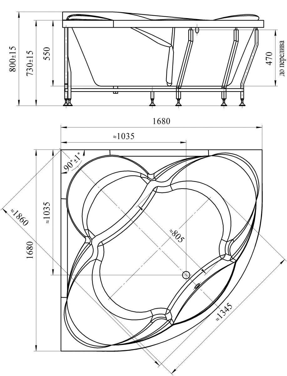 Габариты 168 x 168 x 80 cm