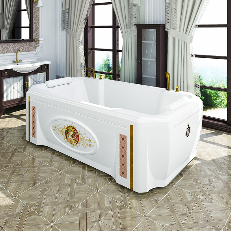 Акриловая ванна Radomir Fra Grande «Фонтенбло» с панелью.Большая и вместительная отдельно стоящая ванна «Фонтенбло» в классическом стиле способна покорить сердца настоящих ценителей. Выполненная из 100% сантехнического акрила, чаша ванны прочно и надежно стоит на сварном металлическом каркасе. Для большего комфорта предусмотрены два подголовника, что позволяет принимать ванну вдвоем. Фронтальная панель ванны «Фонтенбло» украшена декоративными вставками горизонтального типа «Кристаллы Swarovski» и вертикального типа «Арт-мозаика». Визуальный ансамбль дополняет декоративная эмблема с фрагментами картин великих художников.