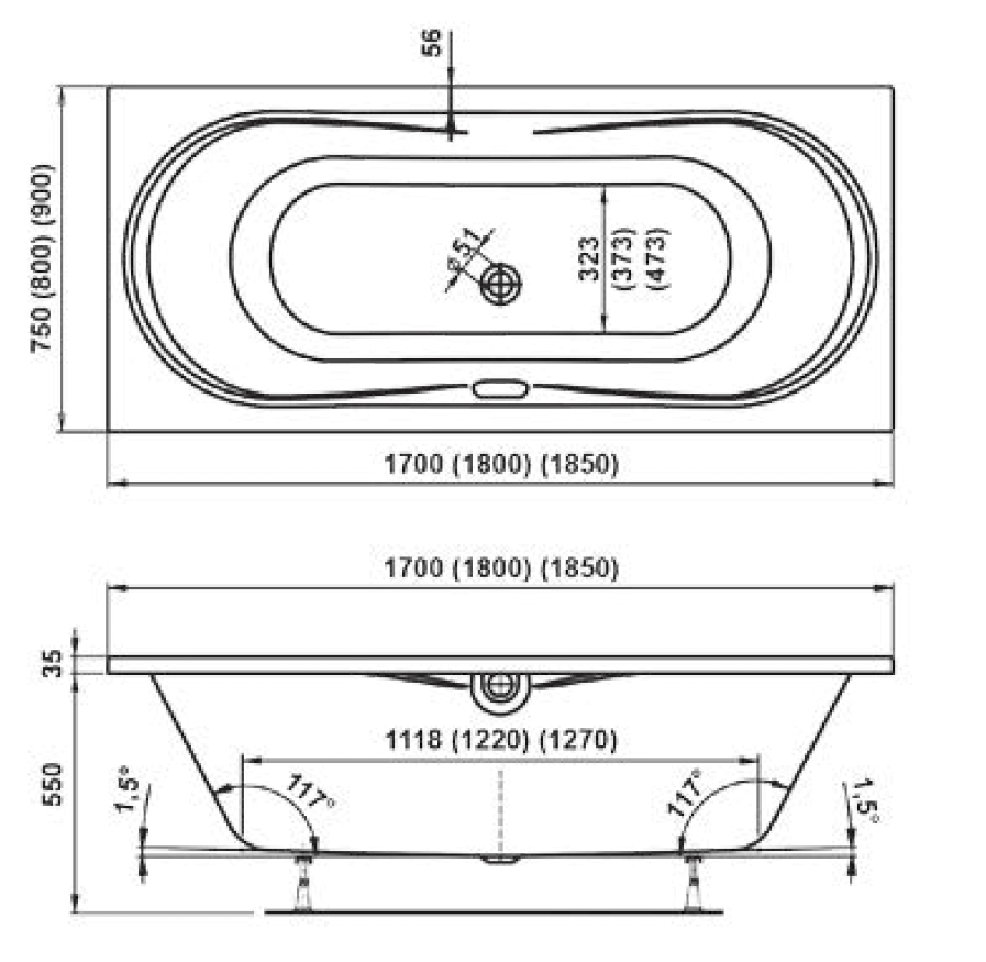 Акриловая ванна VAGNERPLAST BRIANA 1700x750x430 см.