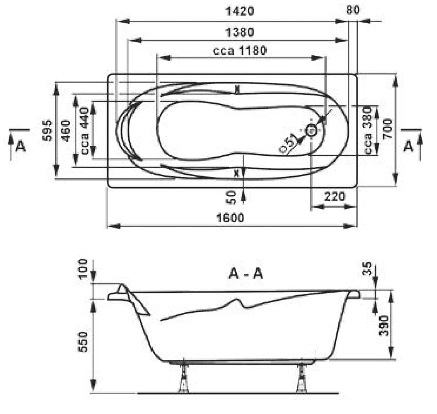 Акриловая ванна VAGNERPLAST KLEOPATRA 1600х700х390 см.