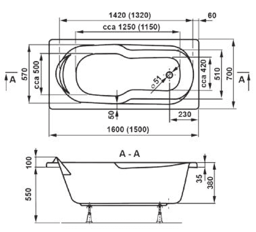 Акриловая ванна  VAGNERPLAST NYMFA 1500x700x380 см.