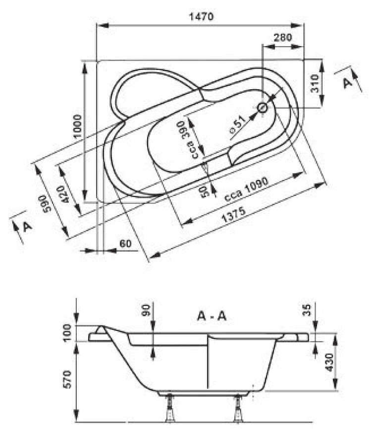 Акриловая ванна VAGNERPLAST SELENA 147 1470х1000х430 L см.