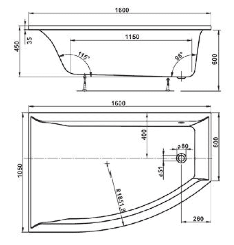 1600x1050x450 см.