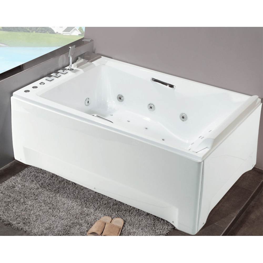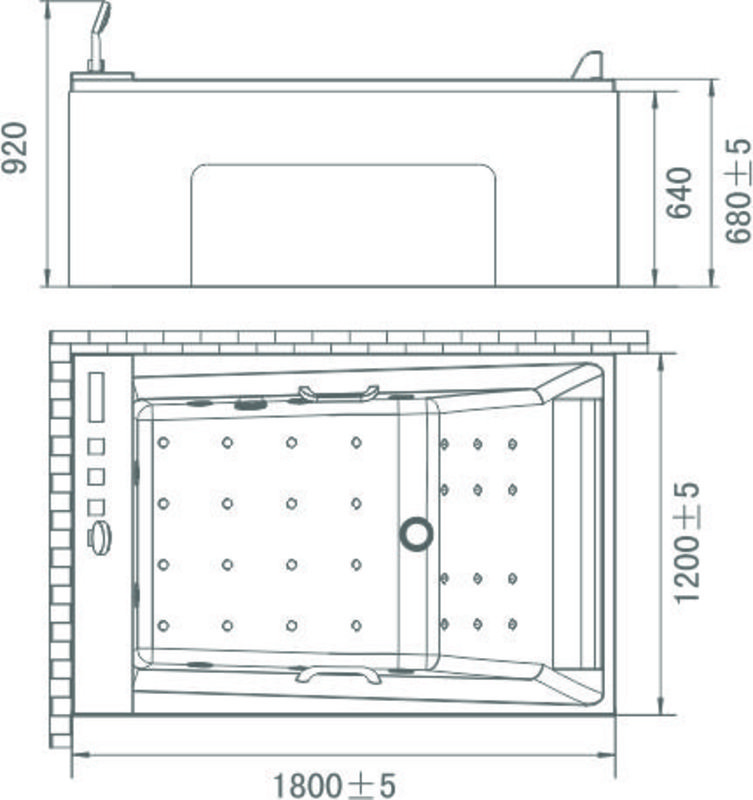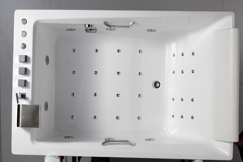 Описание Акриловая ванна с гидромассажем.• Чистый акрил, цвет белый• Сварной каркас из нержавеющей стали• Гидромассаж: 12 спинных форсунок, 6 боковых форсунок, 16 донных форсунок 2 форсунки в зоне ног• Встроенный смеситель с ручным душем, излив водопад• Пневматиче