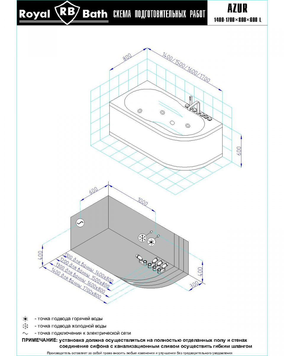 Гидромассажная ванна Royal Bath AZUR DE LUXE 170x80x60L