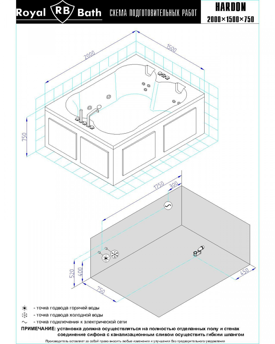 Гидромассажная ванна Royal Bath HARDON DE LUXE 200x150x75