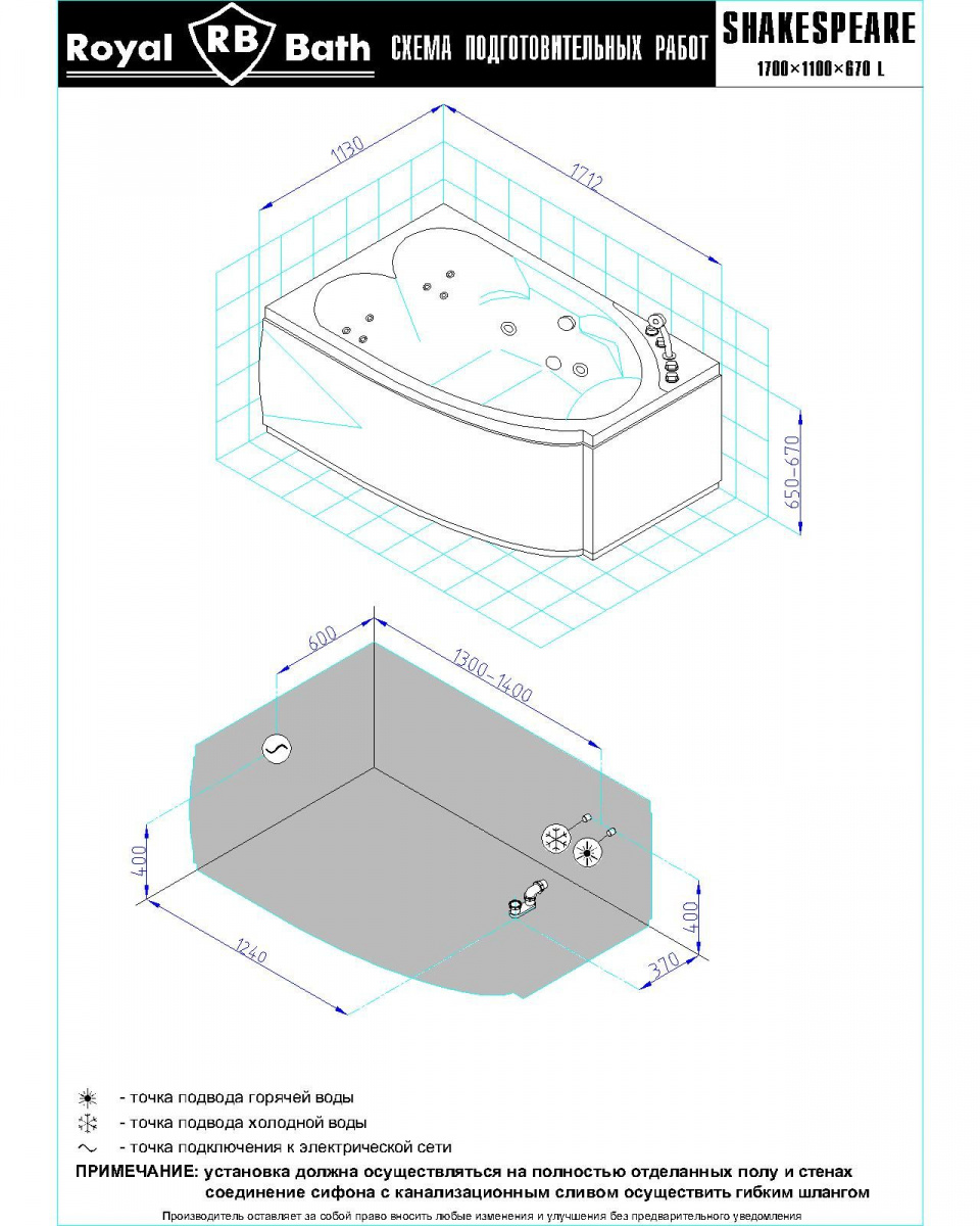 Гидромассажная ванна Royal Bath SHAKESPEARE COMFORT 170х110х67 L