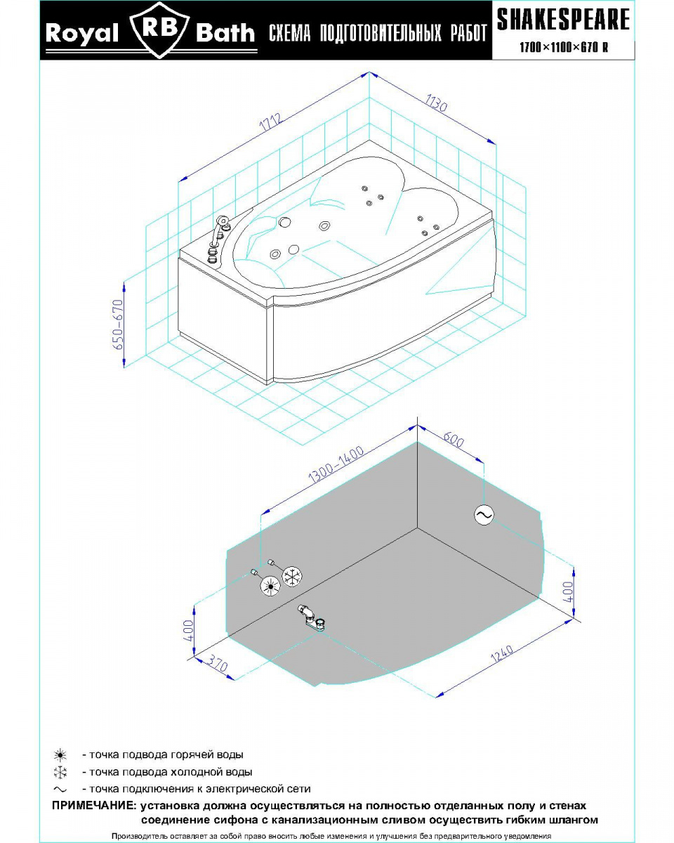 Гидромассажная ванна Royal Bath SHAKESPEARE COMFORT 170х110х67 R