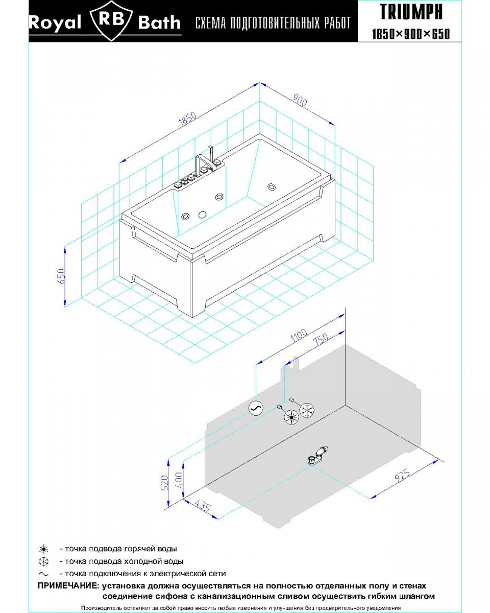 Гидромассажная ванна Royal Bath TRIUMPH DE LUXE 185х87х65