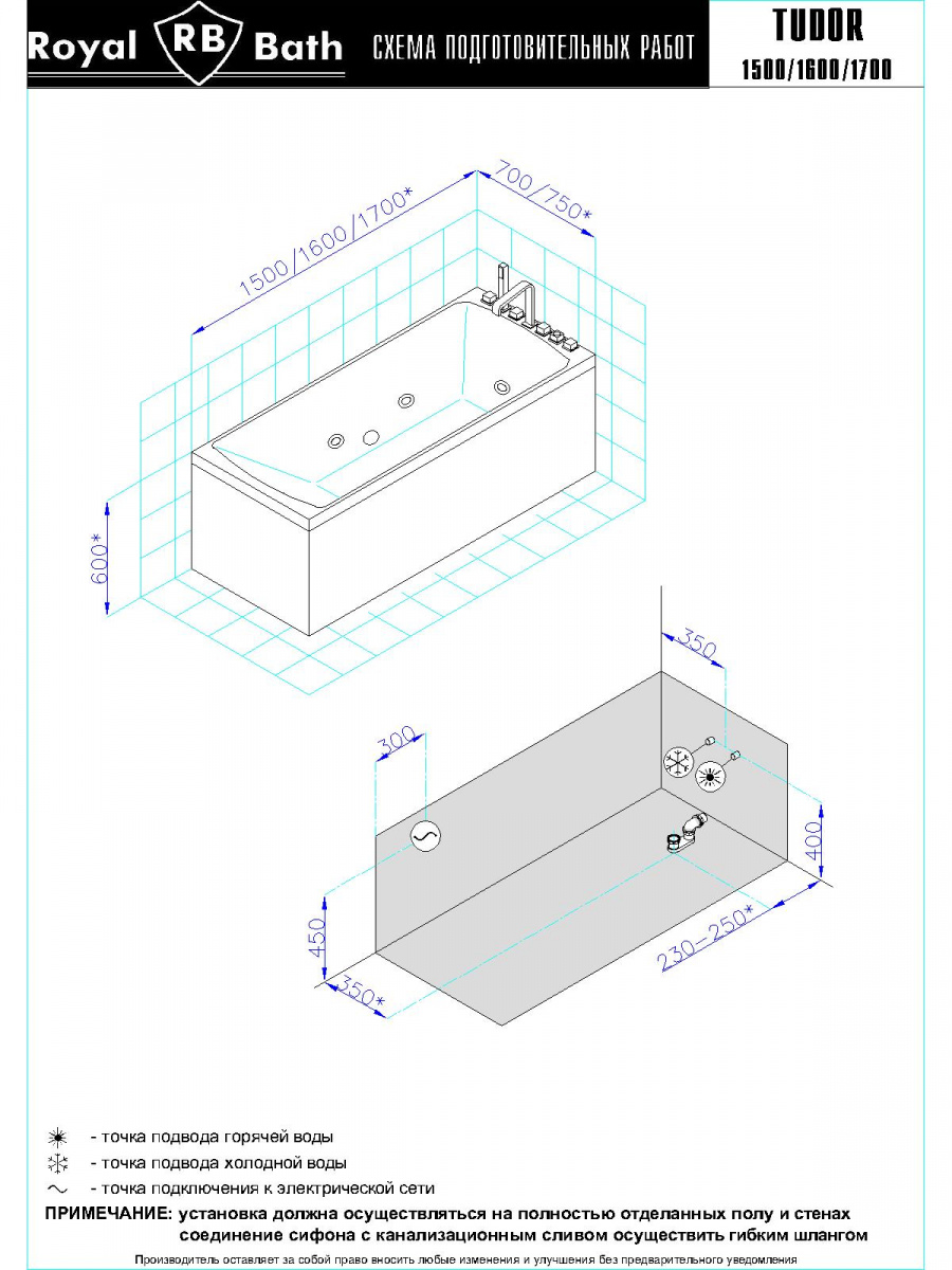 Гидромассажная ванна Royal Bath TUDOR STANDART 160x70x60
