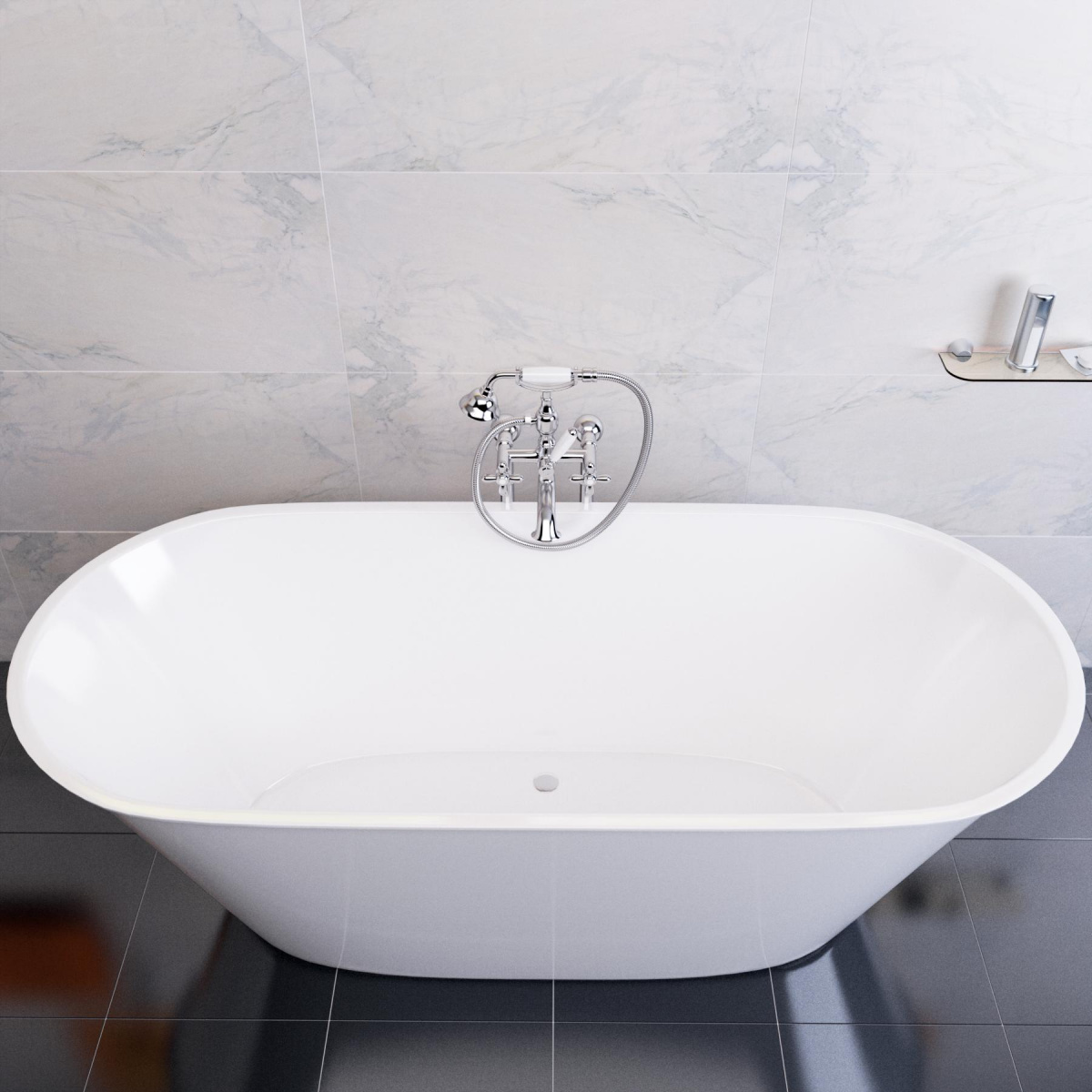 Материал изготовления ванны: литьевой мрамор (смесь полимерной смолы и мраморной крошки).