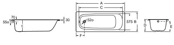Ванна Roca Contesa (160x70). Ножки и слив-перелив необходимо приобретать отдельно.