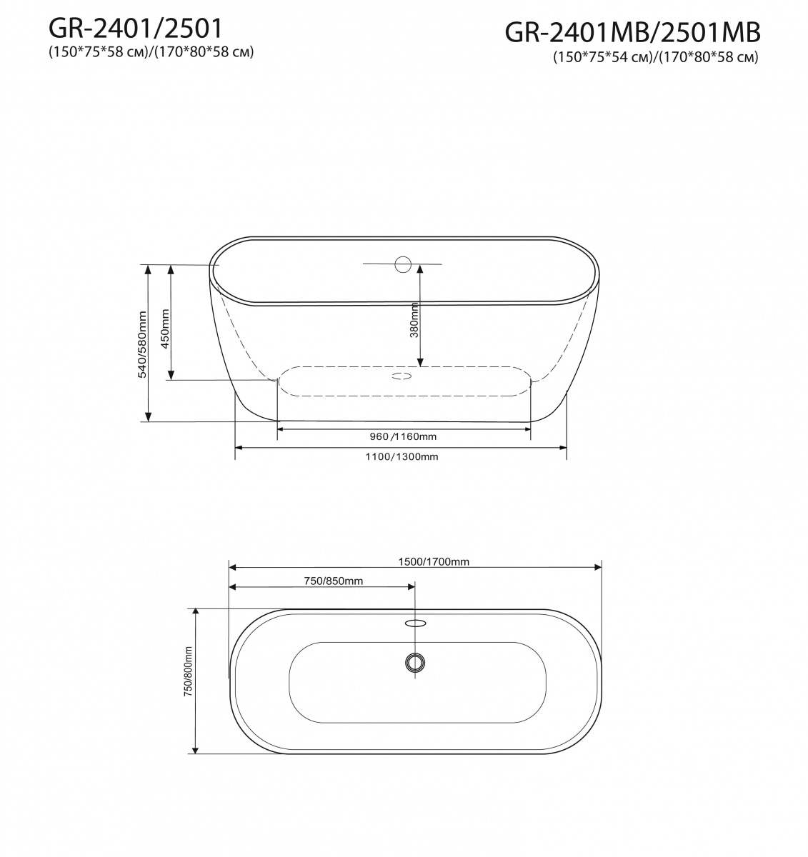 Ванна отдельностоящая Grossman GR-2401 (75x150x58) GROSSMAN 1 место