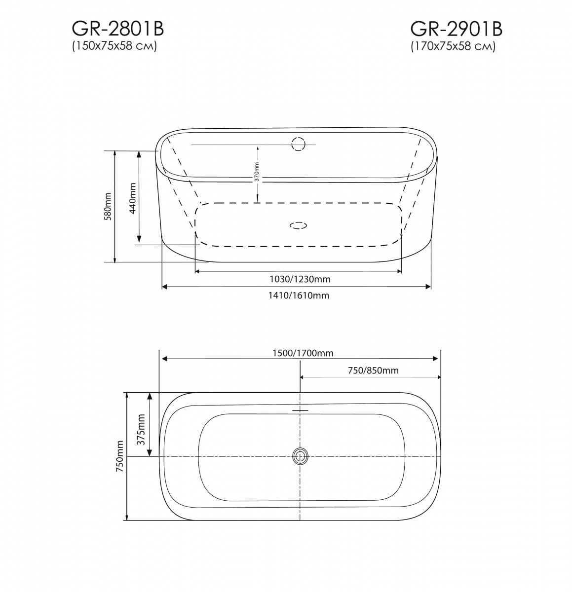 Ванна отдельностоящая Grossman GR-2801 Black (75x150x58) GROSSMAN 1 место